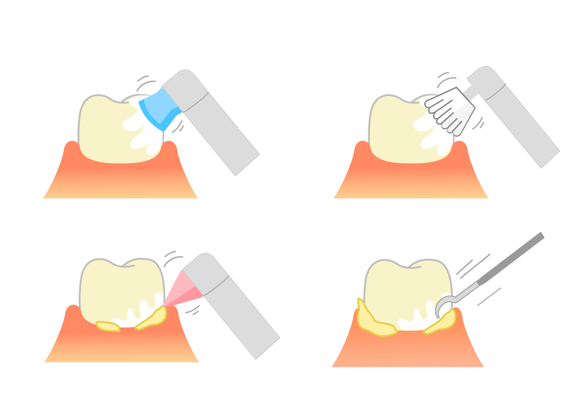 ブラッシングだけでは取れないような歯垢や歯石を、「スケーラー」と呼ばれる器具を使用して除去する治療法です。スケーリングを行うことで、むし歯や歯周病の予防だけでなく、口臭予防にもつながります。